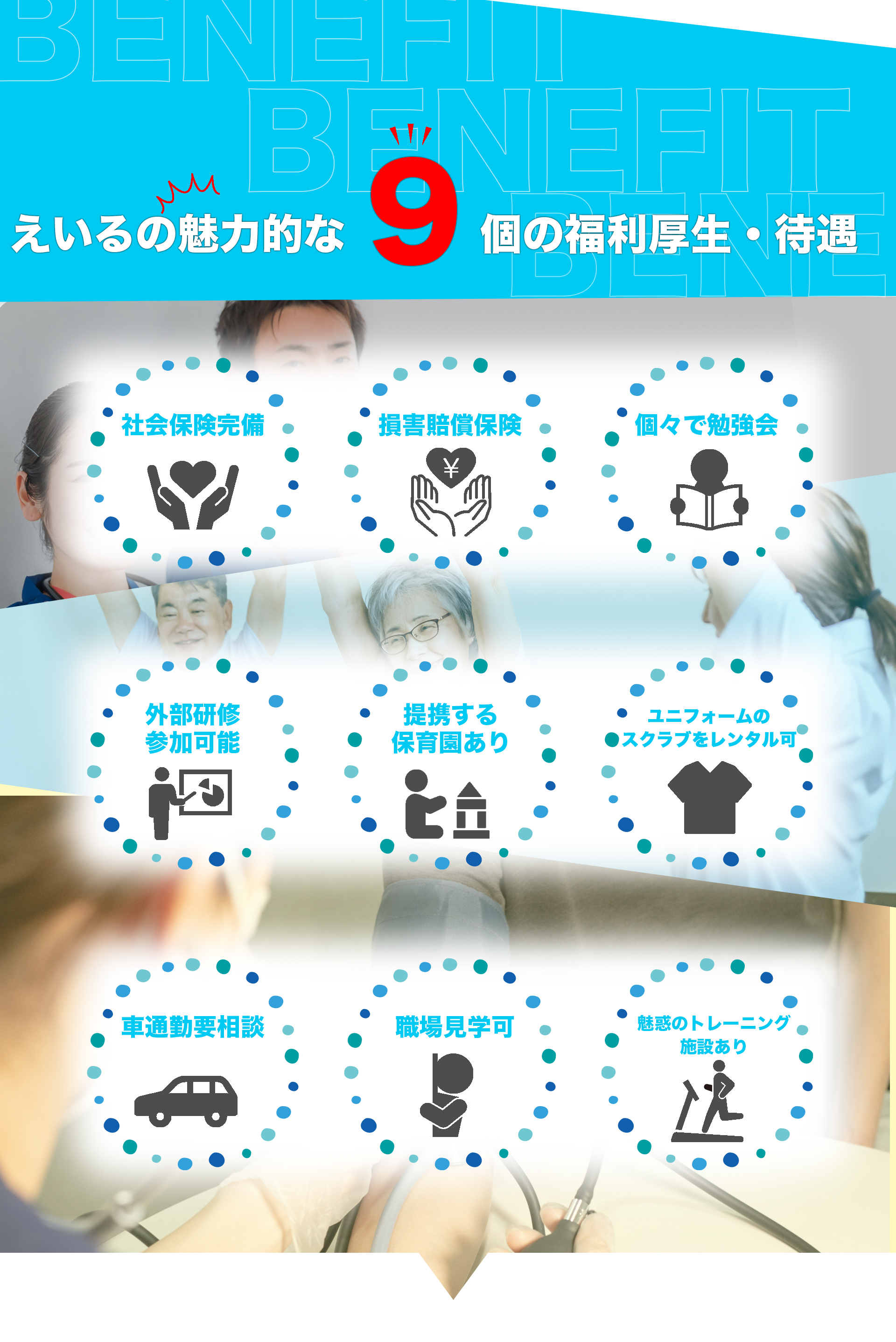 福利厚生待遇 ・雇用保険、労災保険、健康保険、厚生年金